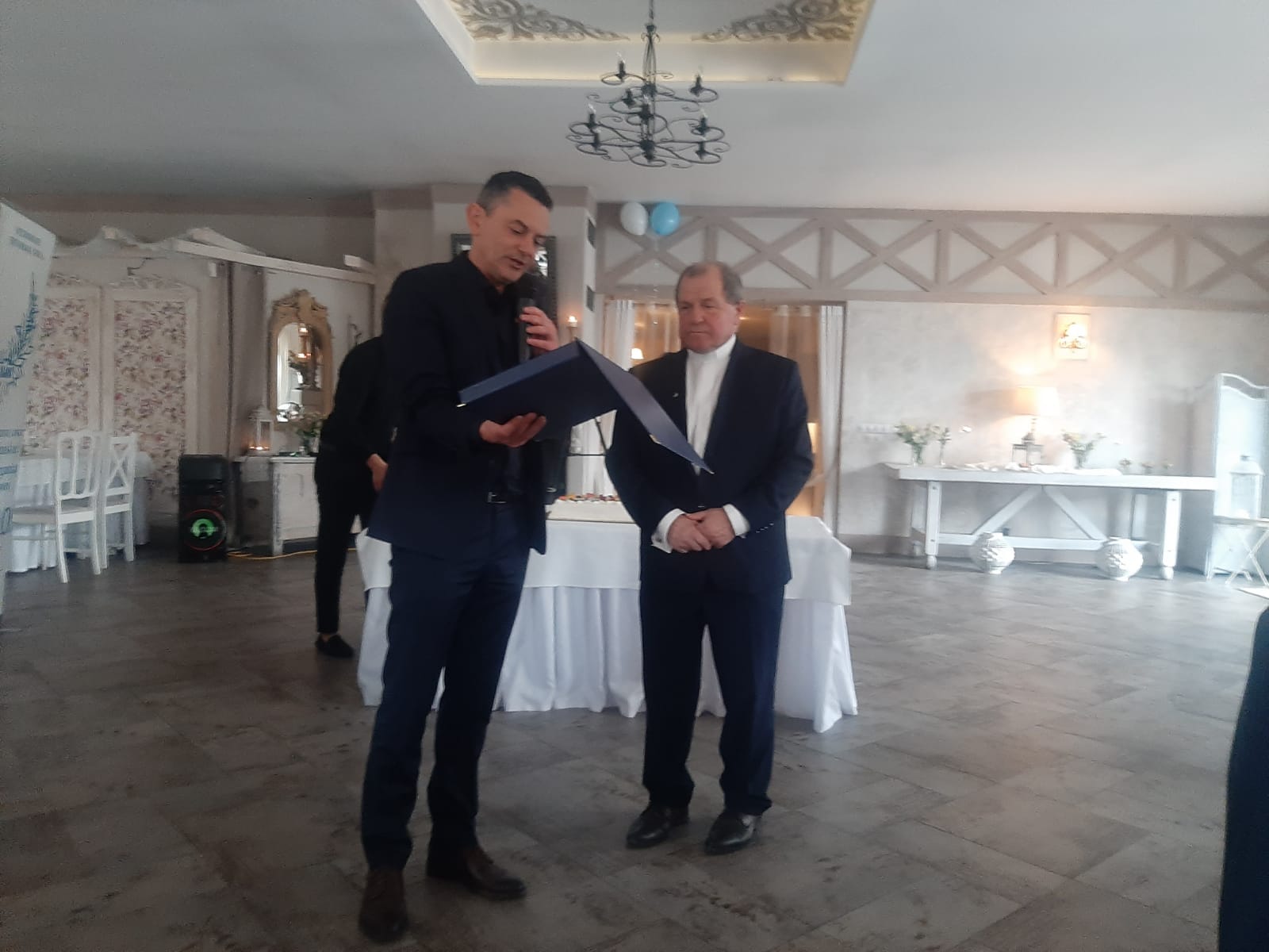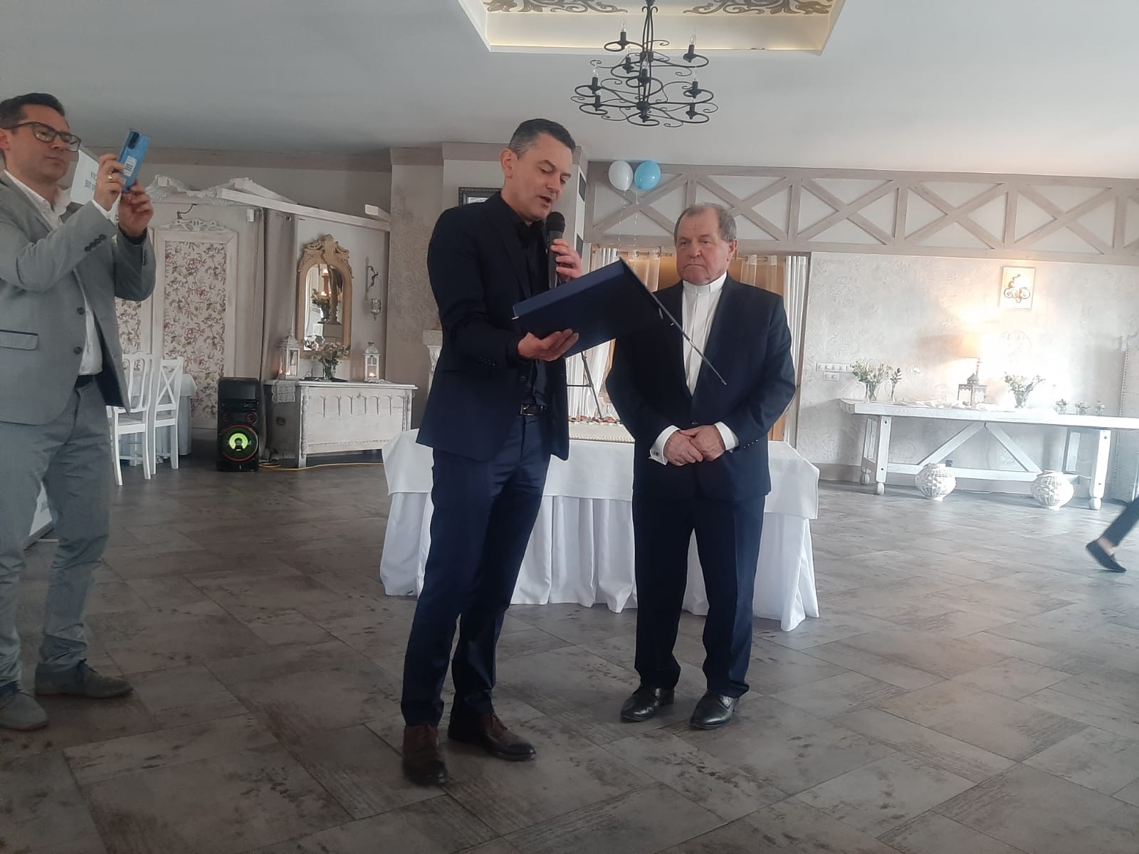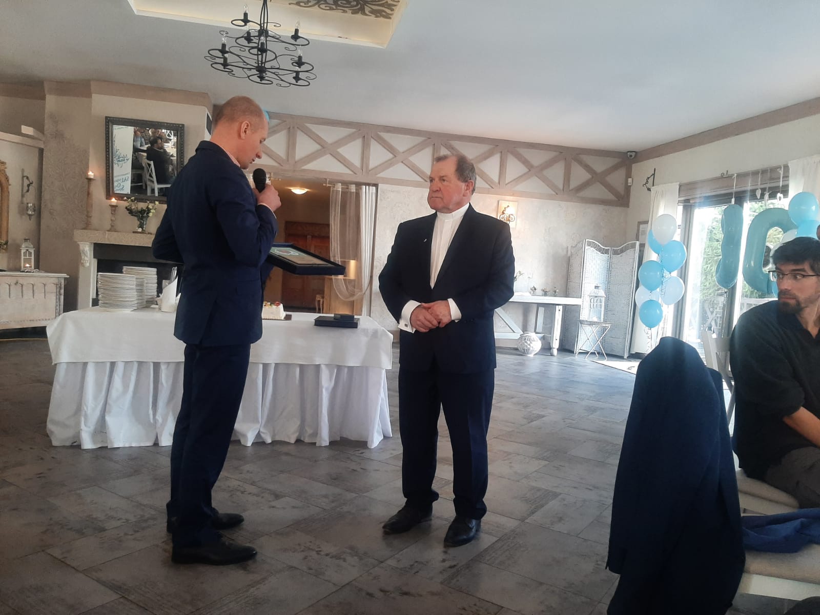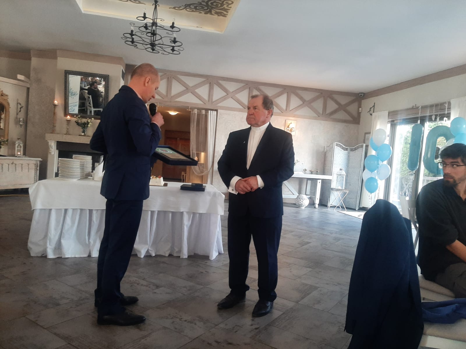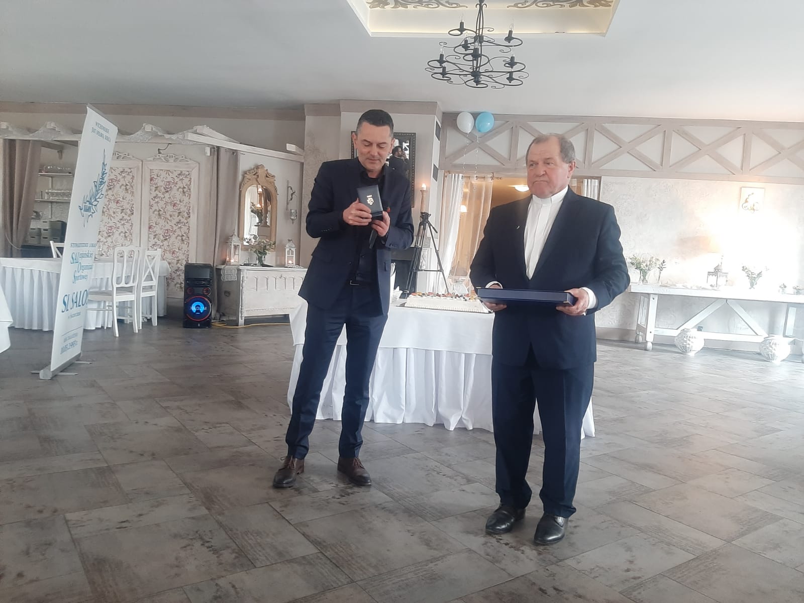 Podczas uroczystego obiadu wiceprezes PZPN Maciej Mateńko wręczył prezesowi SL Salos Szczecin ks. Tadeuszowi Balickiemu srebrny medal Polskiego Związku Piłki Nożnej za wieloletnie zasługi w szkoleniu dzieci młodzieży.